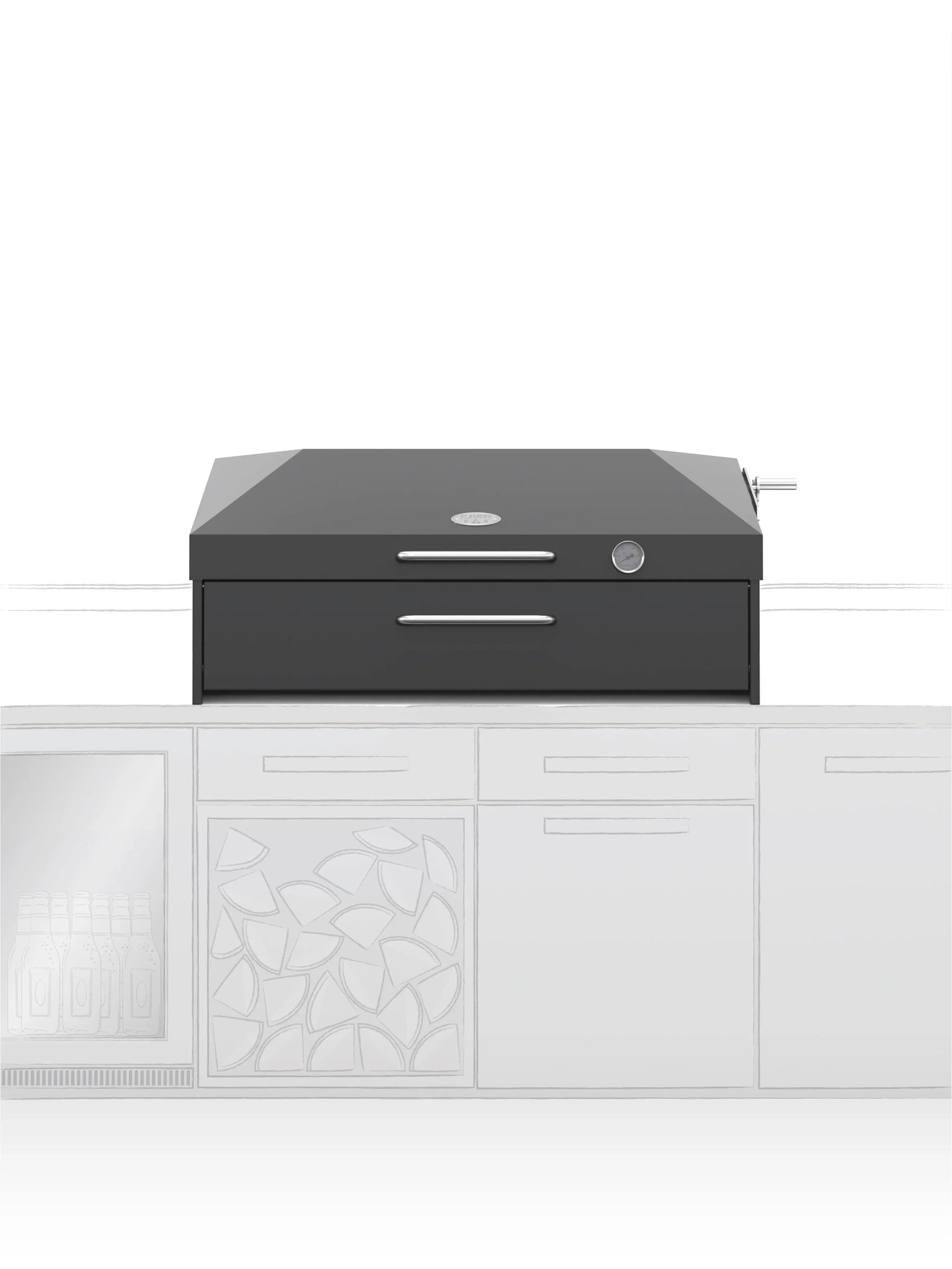 Whilst the Flamery Grills are primarily designed as grills first and foremost, there are added benefits to the lined and insulated lid and drawer. With the lid closed your Flamery grill retains a great deal of heat, allowing the internal temperature to increase, facilitating cooking in a number of different ways such as baking pizzas and breads. With the door open air is pulled through the front aperture and exhausts through the back of the lid.