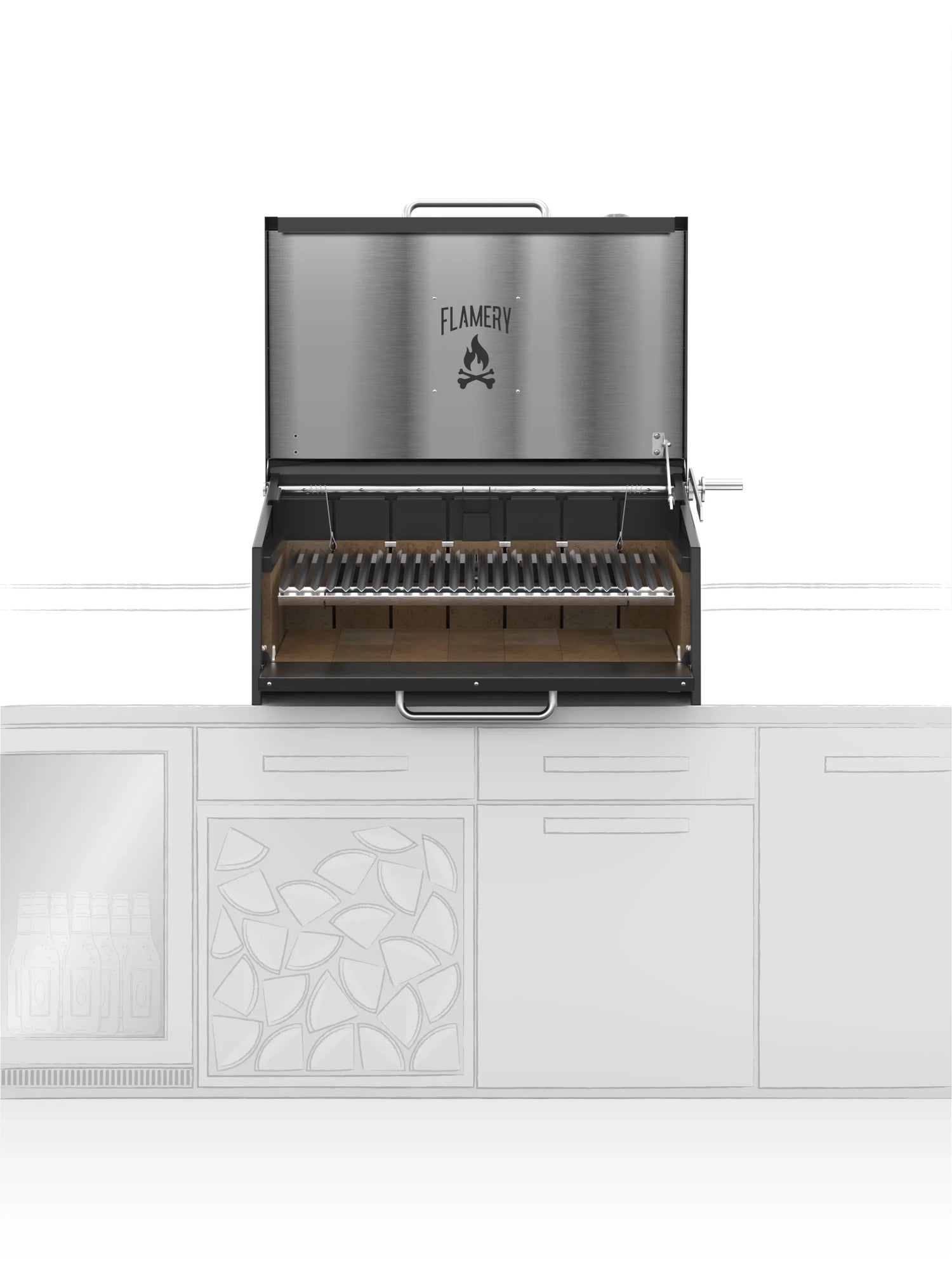 Designed to capture the essence of traditional Argentinian Asado grilling, this built-in model is perfect when live-fire grilling for smaller gatherings or intimate family dinners.