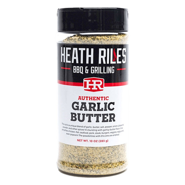 Heath Riles took took his No. 1 selling Garlic Jalapeno Rub and blended it with a unique Roasted Garlic Butter Blend! It is amped up Garlic flavor, salt, pepper, onion powder, jalapeno powder, sugar, & garlic powder combined with a few other spices take this rub to new levels! It is bursting with flavours that amplifies steaks, chicken, seafood, veggies, popcorn, fish, pork, burgers, eggs, and more! The possibilities are endless. Use it as a base layer and combine it with one of our other rubs to create your own unique flavour profile!