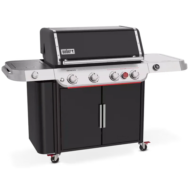 Impress your guests and expand your barbecue skills with the powerfully reinvented 4-burner Genesis® EP-435W Gas Barbecue with Sear Burner and Side Burner. This barbecue delivers intense heat and incredible flavour with a dedicated Sear Burner that unleashes up to 50% more power in the extra-large Sear Zone for bold, flavourful sear marks on meat, fish, and vegetables. Get even heat across the cooking grates with the upgraded high-efficiency PureBlu burner system that ignites reliably and maintains a consistent gas flow. Enjoy a side burner for simmering or sautéing, an easy-to-read digital thermometer, and NIGHTVISION LED lighting integrated into the handle that automatically turns on when you lift the lid. Plus, an expandable top cooking grate to increase your cooking area and keep smaller foods above the flame. Explore new ways to cook and entertain with the included Weber Crafted® Gourmet BBQ System cooking grates that hold a variety of grillware (sold separately), like the sear grate, pizza stone, griddle, and more. Add a Weber Crafted® Frame Kit (sold separately) to fit a variety of Weber Crafted® grillware (sold separately). Keep utensils, seasonings, and prepped food handy, ready to barbecue and easy to serve with large, customizable side tables that fit a variety of Weber Works drop-in accessories and snap-on accessories (sold separately). Organize and store it all away in the large barbecue locker, so you’ll be ready for your next cooking adventure.