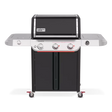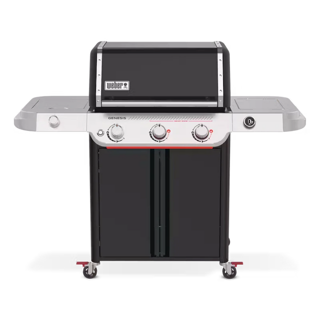 Take your entertaining to the next level and create unforgettable food with the reinvented 3-burner Genesis® E-335W Gas Barbecue with Sear Zone and Side Burner. Crank up the heat with two Boost Burners that unleash up to 35% more power in the extra-large Sear Zone for bold, flavourful sear marks on meat, fish, and vegetables. Get even heat across the cooking grates with the upgraded high-efficiency PureBlu burner system that ignites reliably and maintains a consistent gas flow. Enjoy a side burner for simmering or sautéing and an easy-to-read digital thermometer. Explore new ways to cook and entertain with the included Weber Crafted® Gourmet BBQ System cooking grates that hold a variety of grillware (sold separately), like the sear grate, pizza stone, griddle, and more. Add a Weber Crafted® Frame Kit (sold separately) to fit a variety of Weber Crafted® grillware (sold separately). Keep utensils, seasonings, and prepped food handy, ready to barbecue and easy to serve with customizable side tables that fit a variety of Weber Works drop-in accessories and snap-on accessories (sold separately).